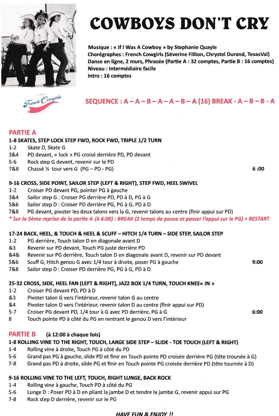 Publié par Brigitte de Cadance Publié dans : #Chorés COWBOYS DON'T CRY S'inscrire à la newsletter Pour être informé des derniers articles, inscrivez vous :